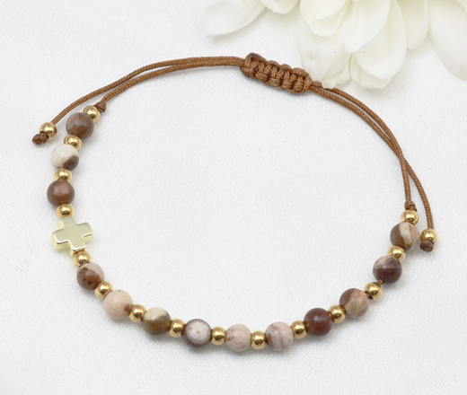 bransoletka różaniec stal złocona na sznureczku kamień słoneczny 1877/20