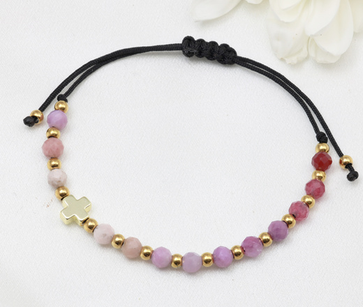 Bransoletka różowa z koralikami na sznureczku 1624/11