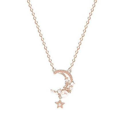 1064/13 Naszyjnik różowe złoto księżyc gwiazdka perełki