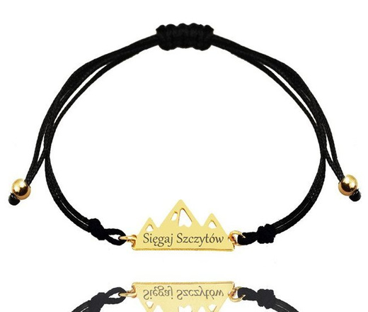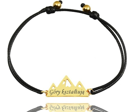 1082 BRANSOLETKA z grawerem na sznureczku, górskie szczyty, góry złote.