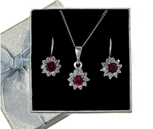 480/235 komplet srebrny ażurowy z bordowymi cyrkoniami