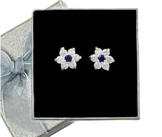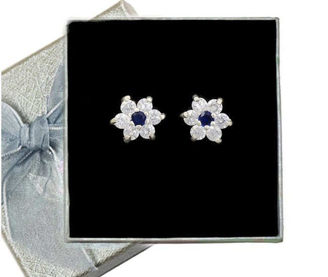 480/106 kolczyki srebrne kwiatki z granatową cyrkonia