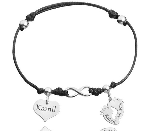 1049 BRANSOLETKA GRAWEROWANA na sznureczku infinity serce stópki