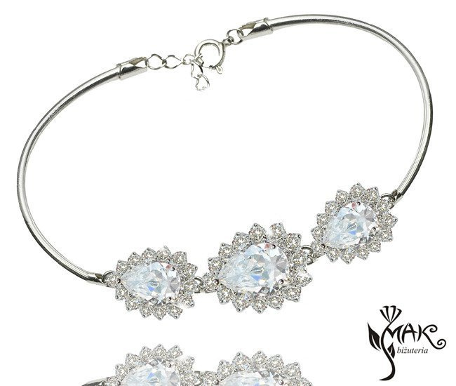 Br599/804 delikatna BRANSOLETKA ślubna z postokątnymi cyrkoniami