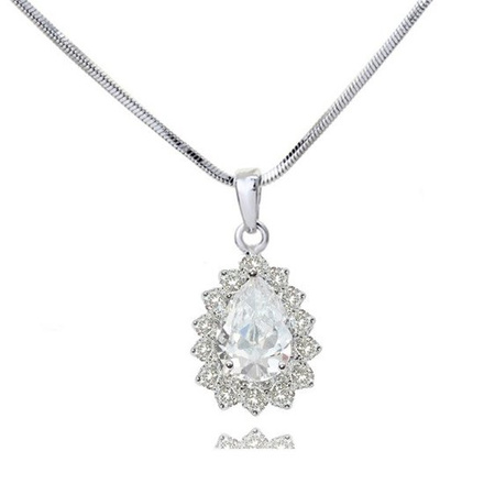 NK599/814 NASZYJNIK białe złoto crystal łezka cyrkonie