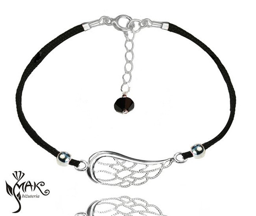 BR835 BRANSOLETKA skrzydło anioła srebrna sznurek