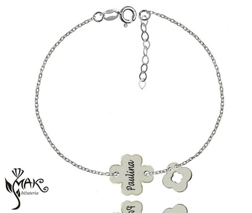 BR745 bransoletka grawerunek laser celebrytka koniczynka srebro 925