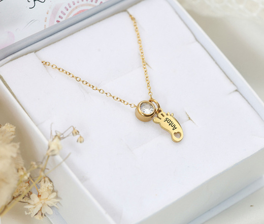 Bransoletka grawerowana z imieniem dziecka, stópka z cyrkonią 1764/1