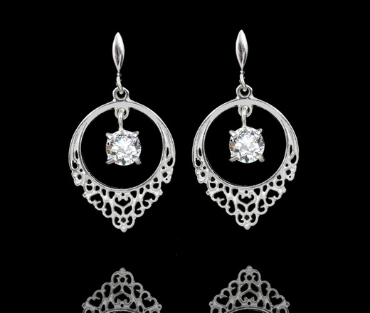 480/485 kolczyki srebrne ażurowe z podwieszaną cyrkonią