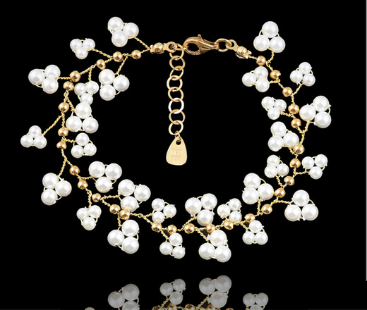 1510 bransoletka srebrna pozłacana z perełkami na ślub