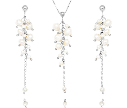 1394 komplet srebrny pozłacany z perełkami na ślub
