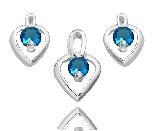 480/359 komplet srebrny 925 serca, cyrkonia niebieska kolczyki wisiorek