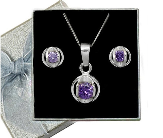 480/262 Kompet srebrny z okrągłą cyrkonią delikatny 925 fioletowy