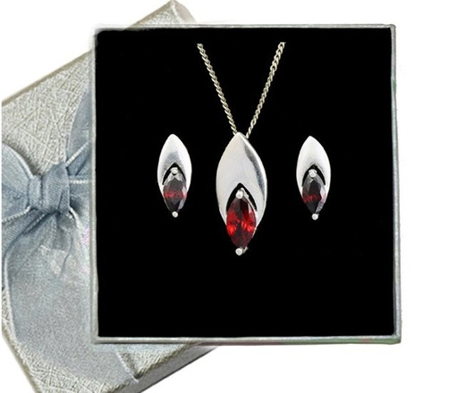 480/101 komplet srebrny łezki z czerwonymi cyrkoniami