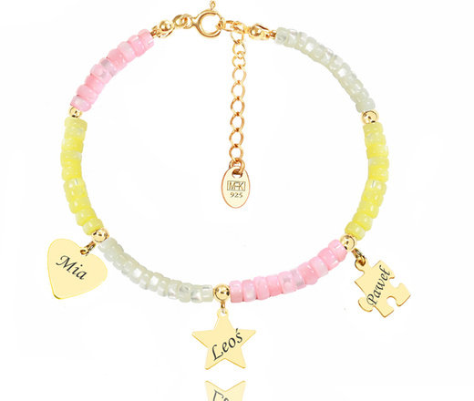 1347 BRANSOLETKA Z GRAWEREM srebro pozłacane na sznureczku