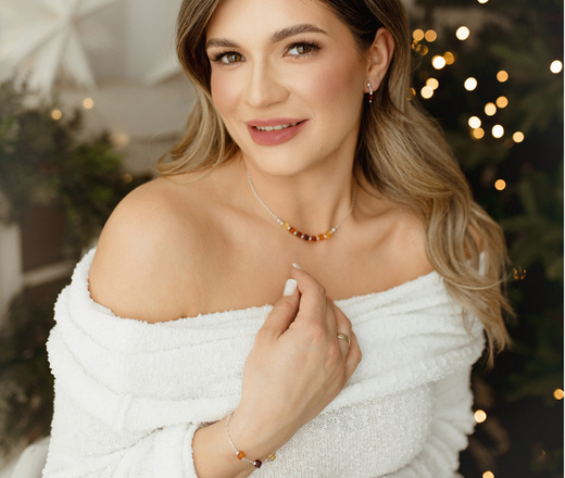 Elegancki bordowy komplet KROPLE złocony z granatem 1875/1