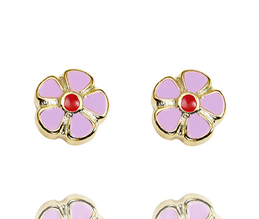 kolczyki dla dziewczynki fioletowy kwiatuszek z emalią 1777/5
