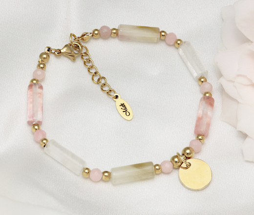 różowa bransoletka pozłacana z kamieniami naturalnymi 1826