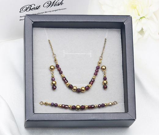 Elegancki bordowy komplet złocony z granatem 1875/3