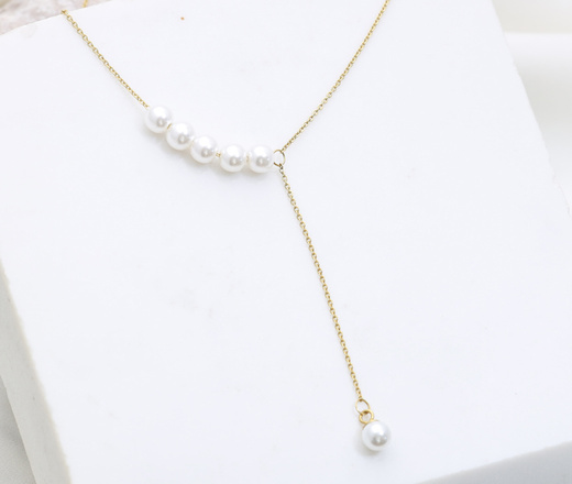 Naszyjnik pozłacany z perłami, stal szlachetna 1857/16