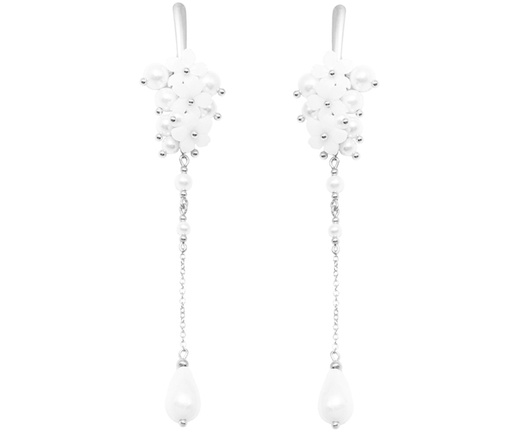 1663 kolczyki perły z kwiatami długie na ślub srebrne
