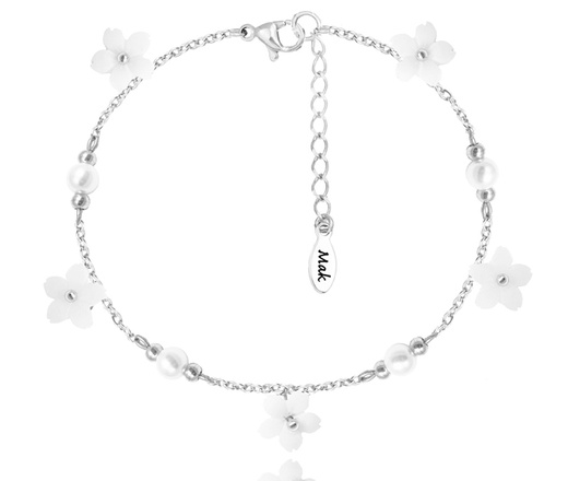 1663 bransoletka z perłami i kwiatami na ślub srebrna