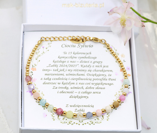 bransoletka grawerowana z kamieniami naturalnymi dla nauczyciela zestaw 1807/18