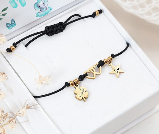 Bransoletka z imionami dziecka pozłacana dla mamy z grawerem na baby shower 1764/8