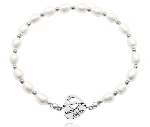 1746/14 Bransoletka z grawerem i perłami naturalnymi dla babci / mamy