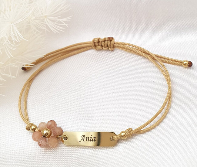 1710/4 Bransoletka grawerowana dziewczęca kwiat z kamienia słonecznego