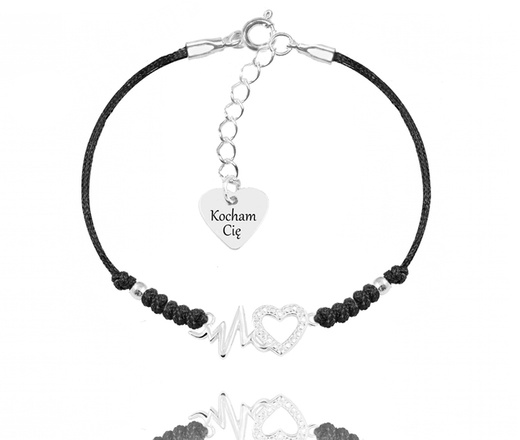 1566 bransoletka z grawerem srebrna sznurek serce linia życia EKG