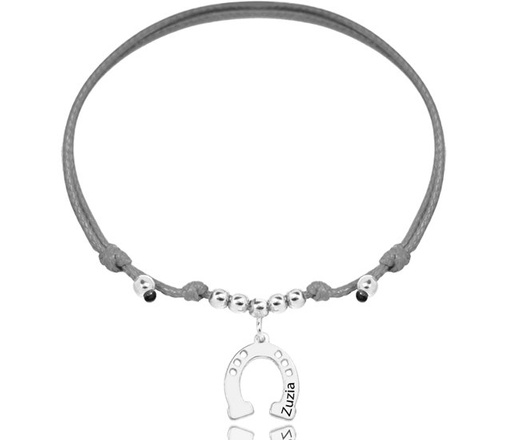 1335 Bransoletka z grawerem srebrna na sznurku zawieszka