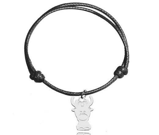 BR962 BRANSOLETKA Z GRAWEREM srebrna na sznurku wózek, miś, stópka