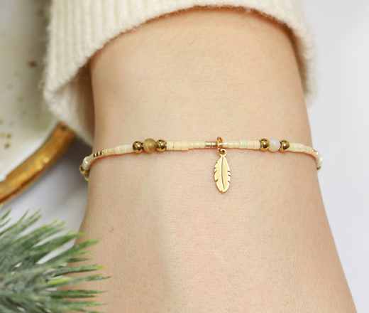 Zestaw urodzinowy bransoletka beżowo-brązowa z perełką 1873/13