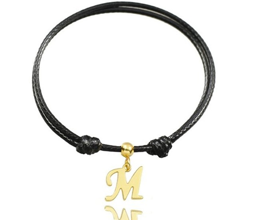 1039 BRANSOLETKA inicjał literka alfabet złota na sznureczku