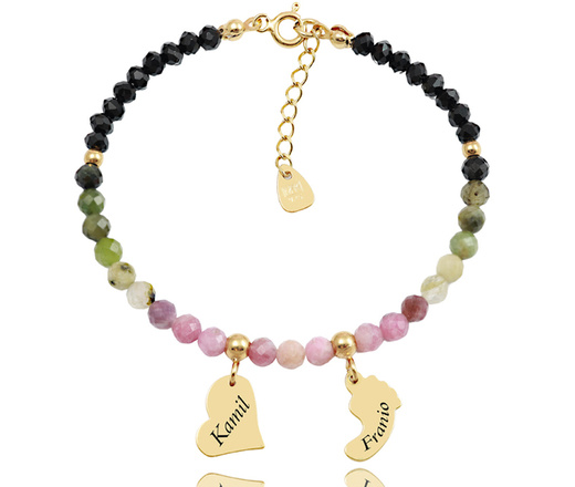 1732/2 bransoletka złocona z grawerem i kamieniami naturalnymi dla mamy