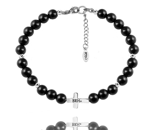 1657 bransoletka męska grawerowana stalowa kamienie naturalne i krzyżyk