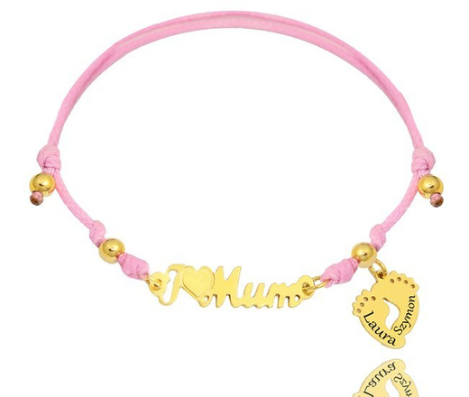 1274/5 bransoletka grawerowana I love Mum srebro 925 pozłacane stopki