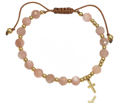 bransoletka różaniec stal złocona na sznureczku kamień słoneczny 1872/1
