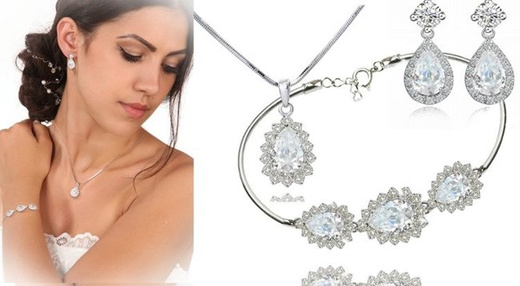 KPL 599/570 komplet kolczyki i wisiorek z krystalicznymi łezkami plus łańcuszek, srebrny