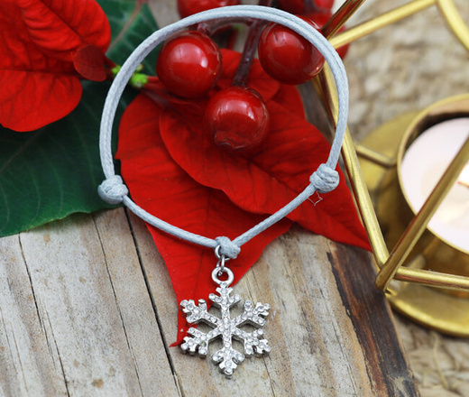 1596/18 bransoletka charms duży na sznureczku srebrzona świąteczna śnieżynka