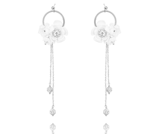 1668 kolczyki na ślub kwiatuszki z kuleczkami disco ball oraz z kryształkami srebrne