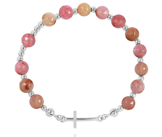 1627/11 bransoletka srebrna 925 różaniec z kamieniami naturalnymi rodonit