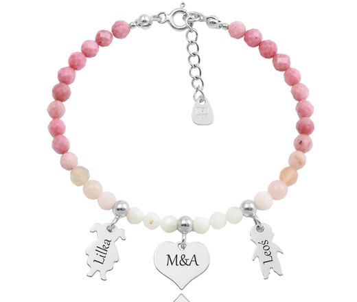1734/1 różowa bransoletka srebrna 925 z grawerem i kamieniami naturalnymi