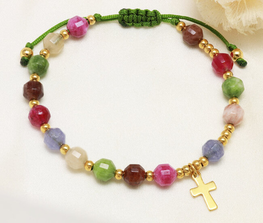 1714/2 bransoletka różaniec złota, kolorowe kamyki turmalin