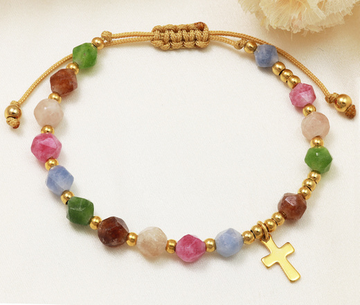 1631/4 bransoletka różaniec stal złocona z kamieniami naturalnymi