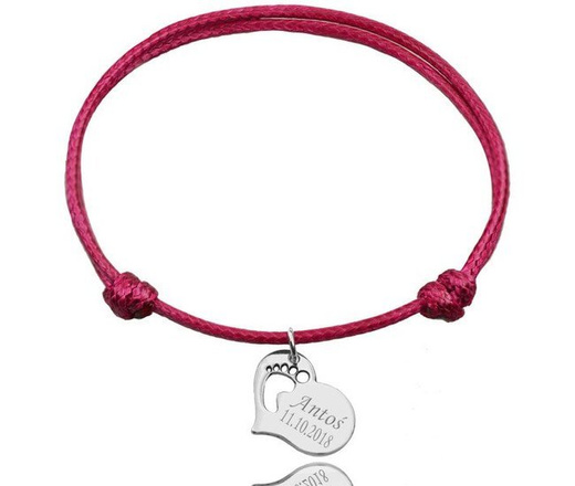 BR960 BRANSOLETKA z grawerem na sznureczku stópki serce zapięcia