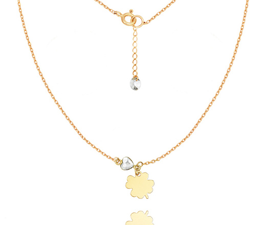 1383/19 naszyjnik srebrny 925 pozłacany z koniczynką i sercem