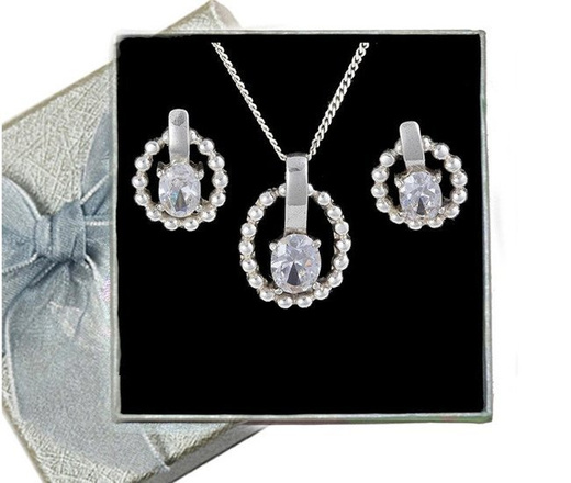 480/240 komplet srebrny z błyszczącymi cyrkoniami