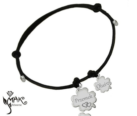 BR835 BRANSOLETKA koniczynka srebrna sznurek